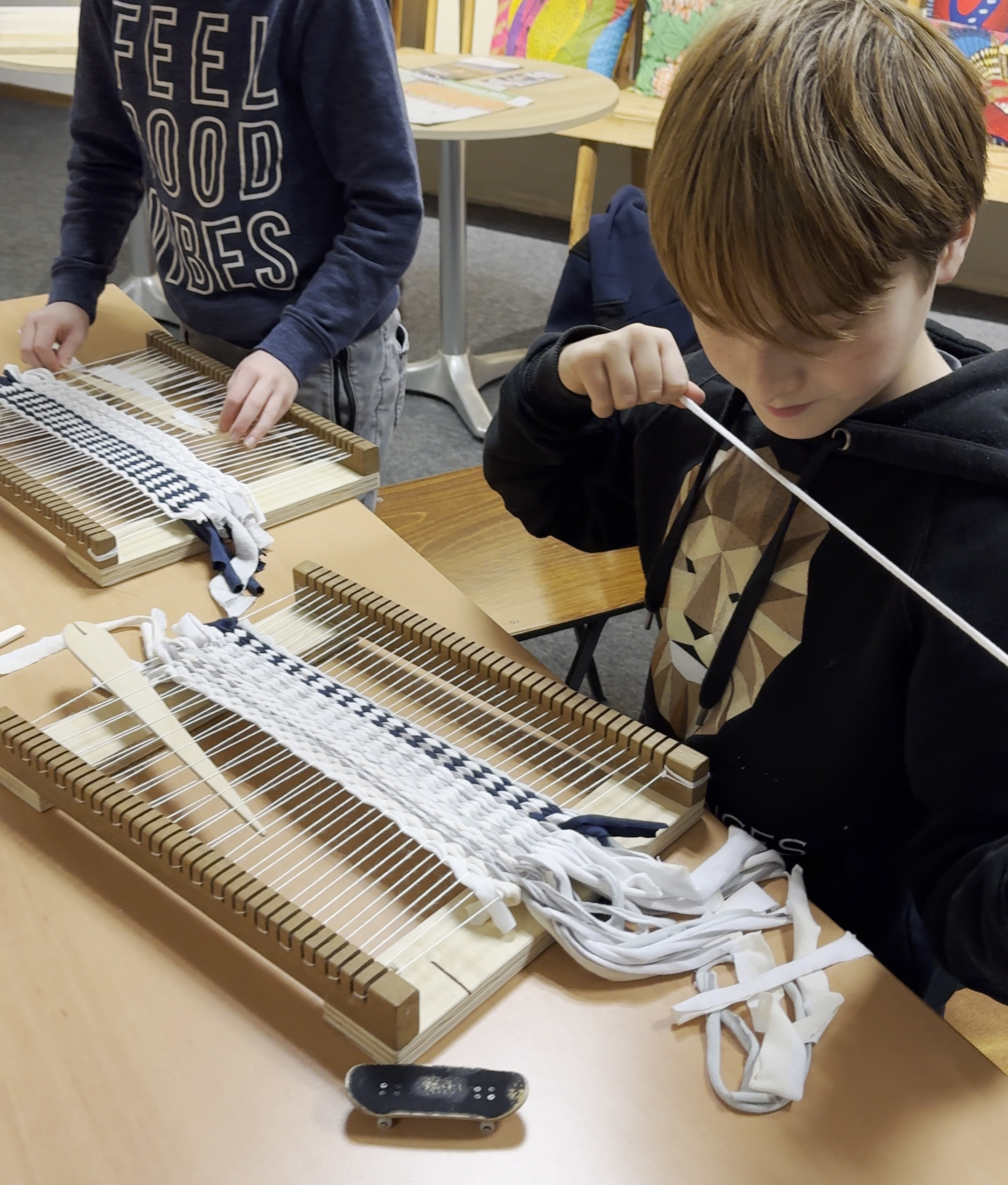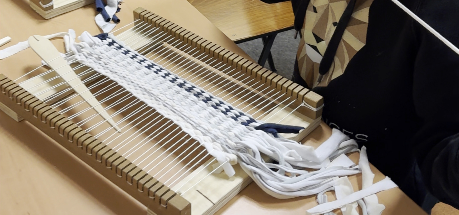 Iedereen kan een eigen weefsel maken door textiel te hergebruiken. Kom weven en merk hoe leuk hergebruik is.