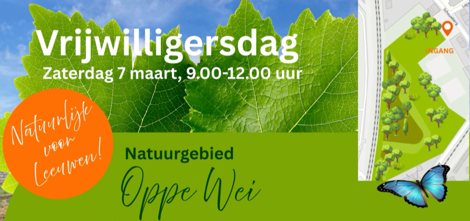 Oppe Wei is een 2 hectare grote wei in Leeuwen die wordt aangeplant met bomen en struiken om er een natuurgebied van te maken. Op 4 maart vindt om 10.30uur de officiële opening plaats door het planten van een koningslinde door wethouders Felix van Ballegooij en Dirk Franssen. Zij worden hierbij ondersteund door leerlingen van de 2 basisscholen in Leeuwen. Ook onthullen zij samen op een verrassende manier een educatief bord bij de ingang van de weide. Alle leerlingen gaan deze morgen aan de slag met de workshop "vogelhuisje timmeren" en ze gaan samen struiken aanplanten om zo een eerste aanzet te maken met de aanplant.